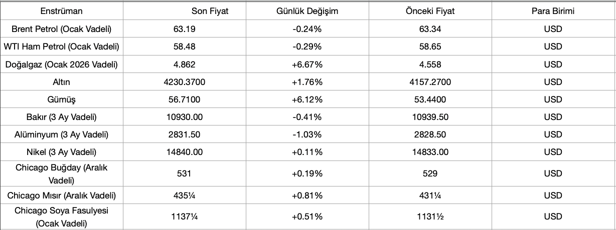 Brent 63–64 dolar bandında, WTI 59 dolar civarında her ikisi arz artışı nedeniyle baskılanıyor.