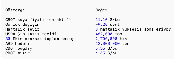 Bu tablo değişmedikçe soya kontratları yukarı yön bulmakta zorlanıyor.